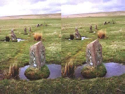 Adopt a comfortable viewing distance from the monitor so that your eyes are not straining in any way (in these pictures the stereoscopic effect is not dependent upon distance, since the two images are fixed in space and present the same information to the eyes regardless of the viewing distance). You may however need to move away from the screen to successfully merge the larger-sized images.