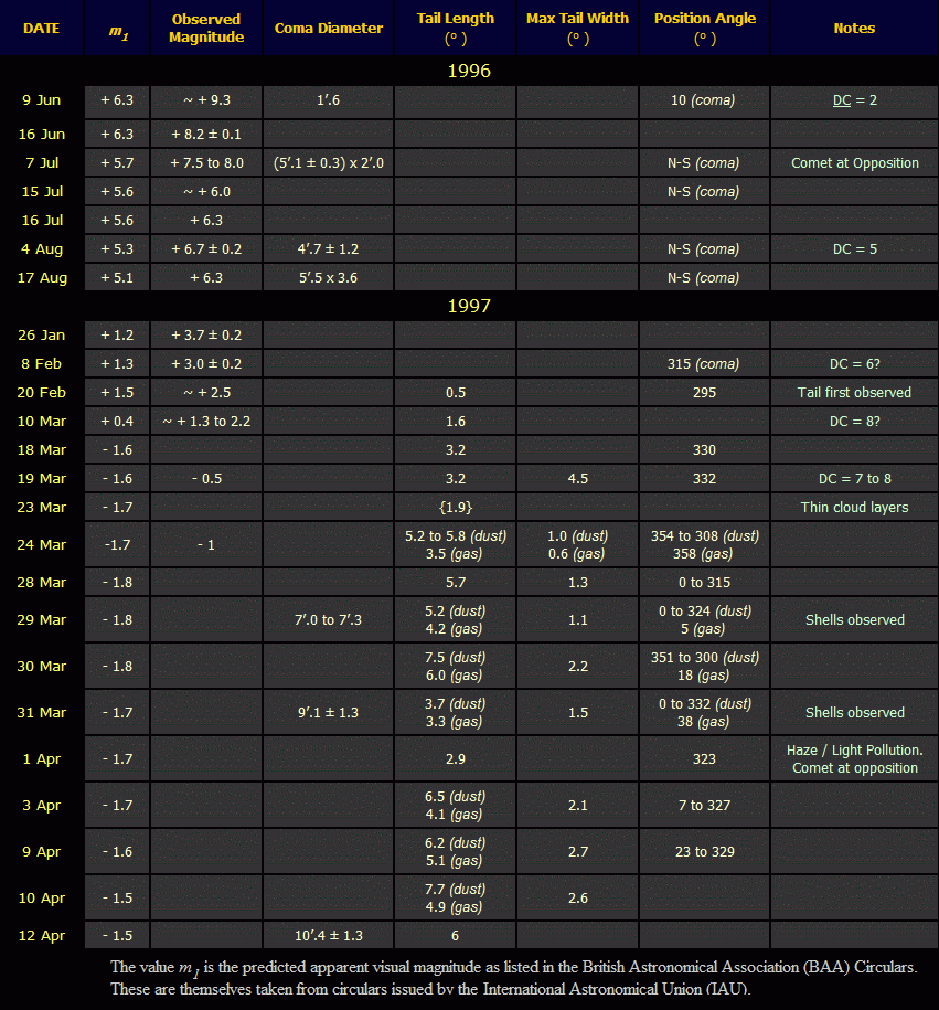 4. John E. Bortle, cited in "The Great Comet of 1997" by Edwin Aguirre in Sky & Telescope, July 1997, pgs. 54-5.
