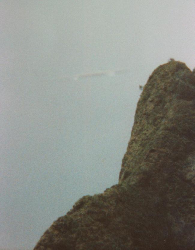 A photograph taken in 1989 over Maui island in Hawaii shows a peculiarly elongated object flying behind a distant hill-top known as the Iao Needle. The photographer, Mike Page, was not aware of the object at the time he took the picture, and it has since been subject to detailed examination. The photograph was recently examined by the Kodak photo laboratory, who concluded that the image was not the result of a processing fault and was genuinely a large, distant object.1 They also suggested that it was "an airliner flying from left to right. Light seems to be hitting the wing (in the centre) and the tailplane (on the left) of the object."