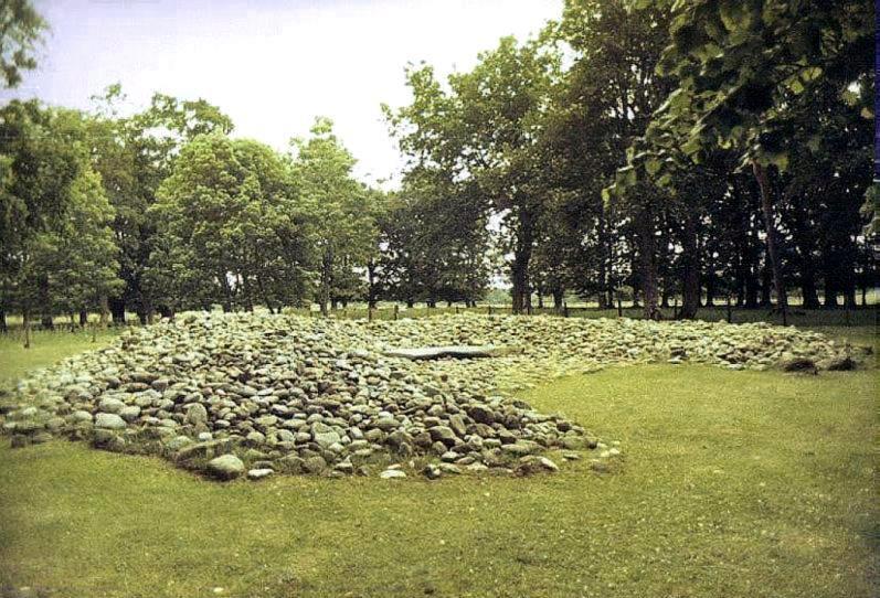 The cairn is elliptical in plan; Alexander Thom suggested that its axis was intentionally orientated towards the most Northerly Moonrise position over distant hills. |
