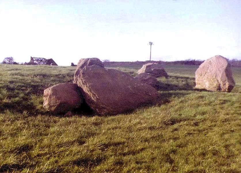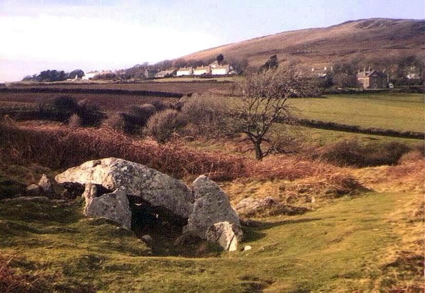 Excavation in 1935 revealed a layer of black earth within the chamber, which contained a considerable amount of charcoal. An arrowhead, pottery fragments and pieces of white quartz were also found, but there were no signs of burial. Evidence from the excavation suggested that the chamber, although built in the Neolithic period, was also used during the Bronze Age. A fallen stone was re-erected during the excavation. Early accounts of the site refer to other stones in the vicinity which were possibly the remnants of a second chamber, or a passage. As is the case at many prehistoric sites in Britain, the name of this monument does not describe the monument itself, but is a name taken from that of a nearby farmhouse or other residence. |